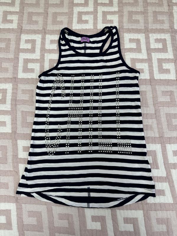 Майка в полоску в идеальном состоянии. Эффектов нет.Замеры на фото.