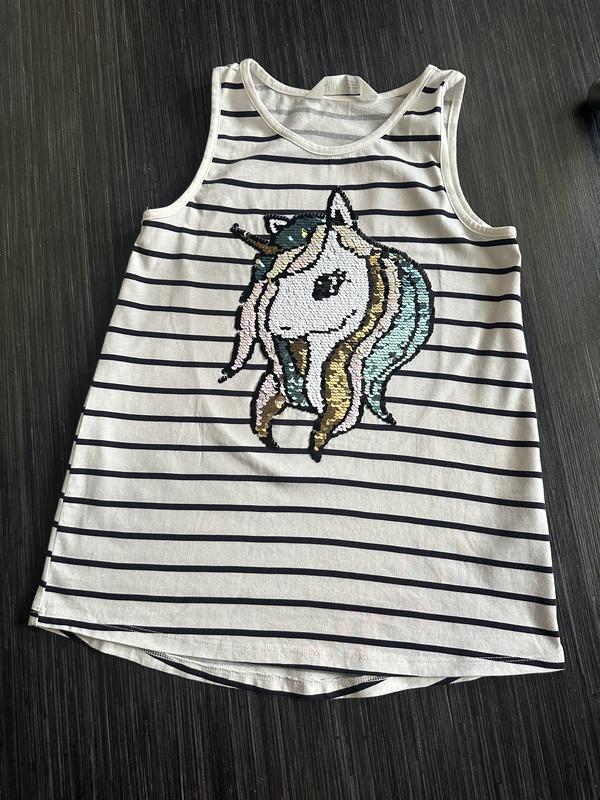 Одели пару раз дочке не зашла она , с пайетками размер 8/10 в идеале замеры подмышки 34 длина 53