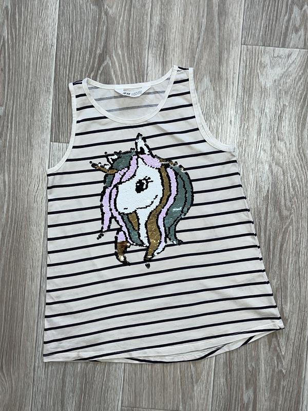 Майка с единорогом Пайетки интерактивные Состояние отличное 🏷️H&M 9-10 лет/140 Длина 51. ПОГ 34