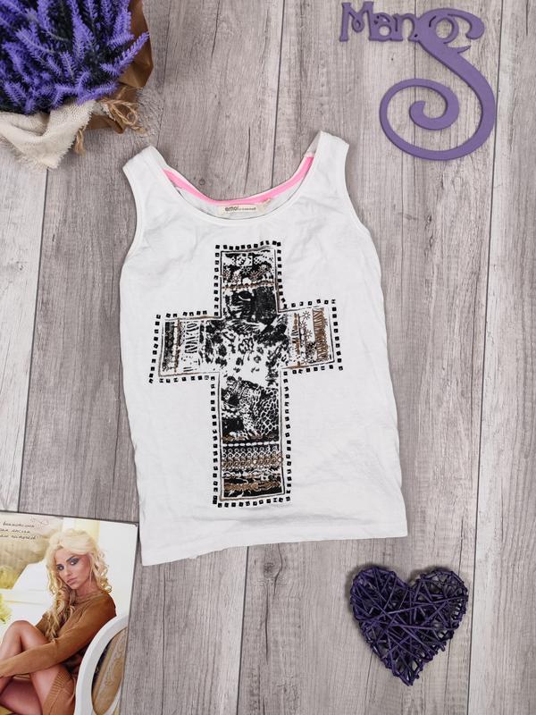 Майка для девочки Emoi белая с рисунком и пайетками Состояние: б/у, в хорошем состоянии Производитель: Emoi Размер: 152 Цвет: белый Принт: рисунок Состав: 100% хлопок
