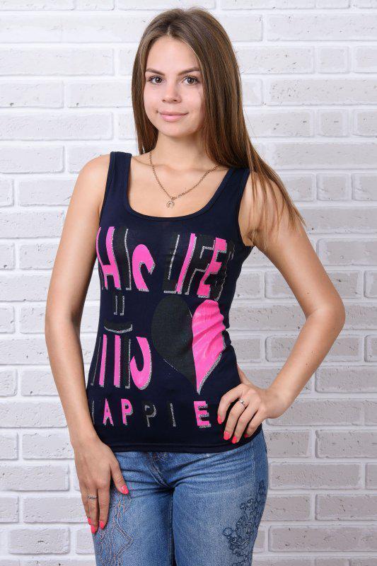 Майка тонка, легка, приємна. Малюнок з блискітками. ВИРОБНИК: Туреччина ширина – 36 см (під руками), довжина – 55 см. Склад: 85% х/б, 15% еластан