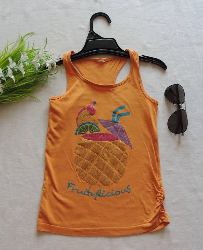 Майка с фруктами оранжевая на 122 128 подмишки 29- 37 см