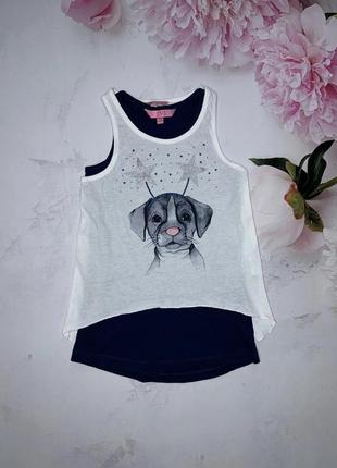 комплект 2 майки ( тунічки) OVS. носяться як на фото, одна поверх іншої. 4-5 років (2 шт.) довжина 50/52. НОГ 28 5-6 років довжина 51/53. ПОГ 29 7-8 років довжина 53/57. ПОГ 31.