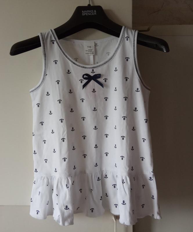 Детская майка футболка с рюшей 152 р. на 11-12 лет хлопок принт якорь