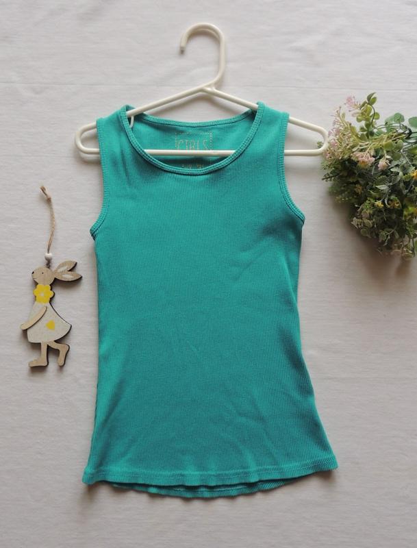 майка 7 8 лет Бирюзовая в рубчик под мышкой 27 44 тянется прекрасно имеет этикетку evie 7-8 лет 100% хлопка реальный цвет фото 1)