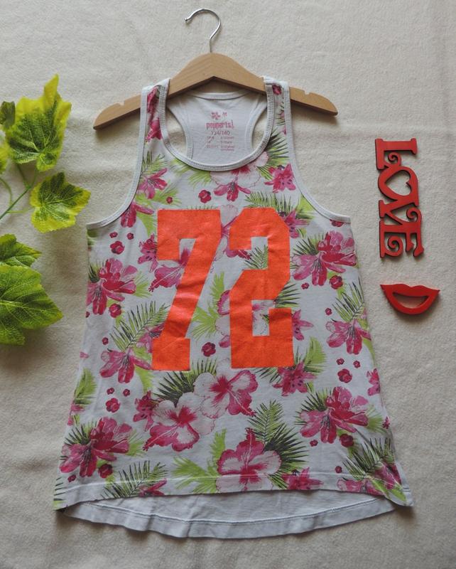 майка с логотипом 72. 134-140 см длина зафиксирована на фото