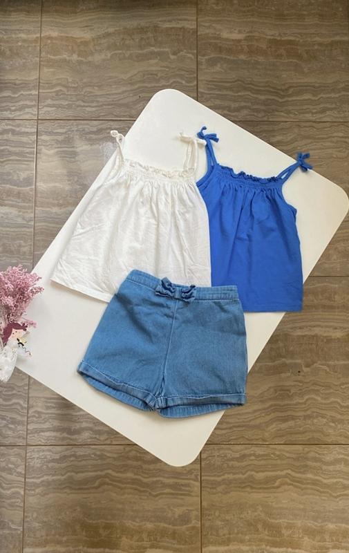 Набор 2-3 года 98р Маечки очень приятная и мягкая ткань фирма некст Шортики очень красиво по фигурке