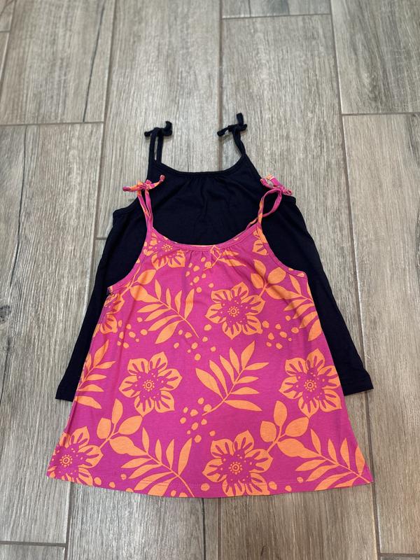 Коттоновые майочки от бренда Tu, розовая в цветы и черная, размер 4роки (104см), состояние новых (только без бирки), цена за 2 штуки
