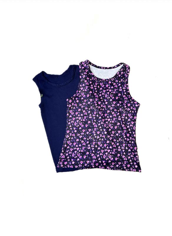 Набір з двох майок. Ціна за дві шт. Синя фірми George 7-8 років в рубчик. Довжина 44 см, ширина 30 см (напів оберт). Стан ідеальний Леопардова 6-7 років, більшомірить буде до 8 років. Довжина 47 см, ширина 33 см.