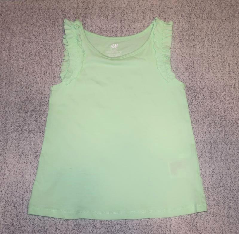 Майка H&M на 5-6 лет - 100% хлопок. Состояние новой. Цена - 95 грн. Замеры: длина от плеча - 43,5 см, ширина под ручками - 29 см.
