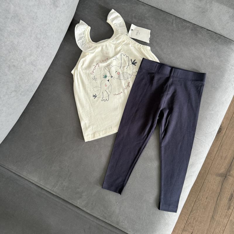 Класний набір для дівчинки на вік 3-4 роки. Майка нова фірми M&S. Довжина 43 см. Лосини ПО 25 см, довжина 50 см, шаг 34 см.