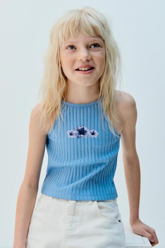 Маечка топ в рубчик для девочки от Zara - Отличное качество. - Пытийный к телу трикотаж в рубчик, красиво тянется. - Склад 97% котон 3% еластан. - Спереди цветочный принт. В наличии размер: 164 (на 13-14 лет). Замеры: 164 - длина по спинке от плеча -43 см; ширина в груди (под проймами) - 32 см.
