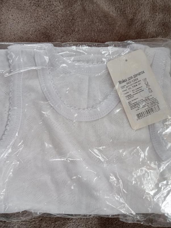 Майка для девочки, летняя, с ажурным узором. По наборке 98-104, подойдет на 3-4 года. Широкие бретельки.