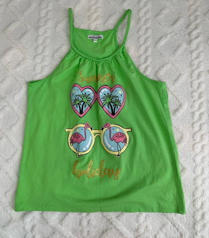 Стильна яскрава майка від відомого виробника piazaitalia в ідеальному стані! Модель вільного крою. Бретелі не регулюються. Тканина-100%котон. Дефекти відсутні. Заміри на фото!