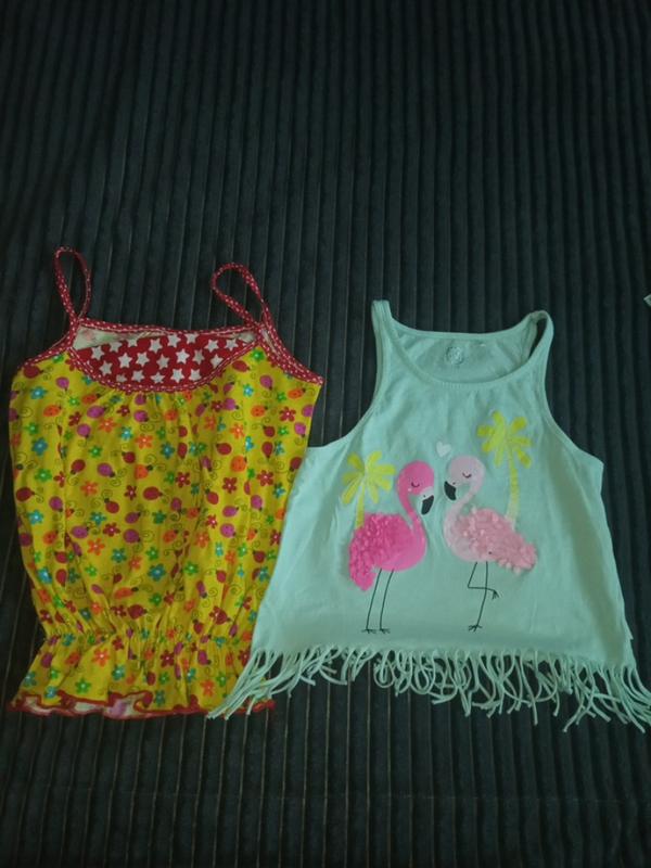 стан нової речі, але без бірок. перша знизу йде ризинка, довжина 43 з брительками, пів обхват грудей 34 в розтягнутому вигляді. друга довжина 34 без тасьми, можна носити укороченою, пів обхват грудей 31