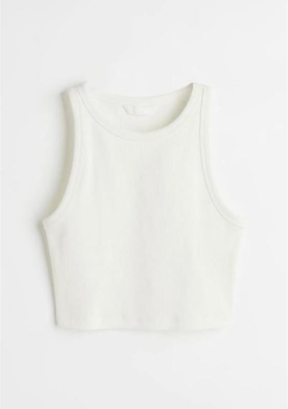 Майка, кроп топ білого кольору в рубчик, розмір вказаний на 12-13 років. Бавовна 95%; 5% еластан, гарна якість, не просвічується. Заміри на фото.