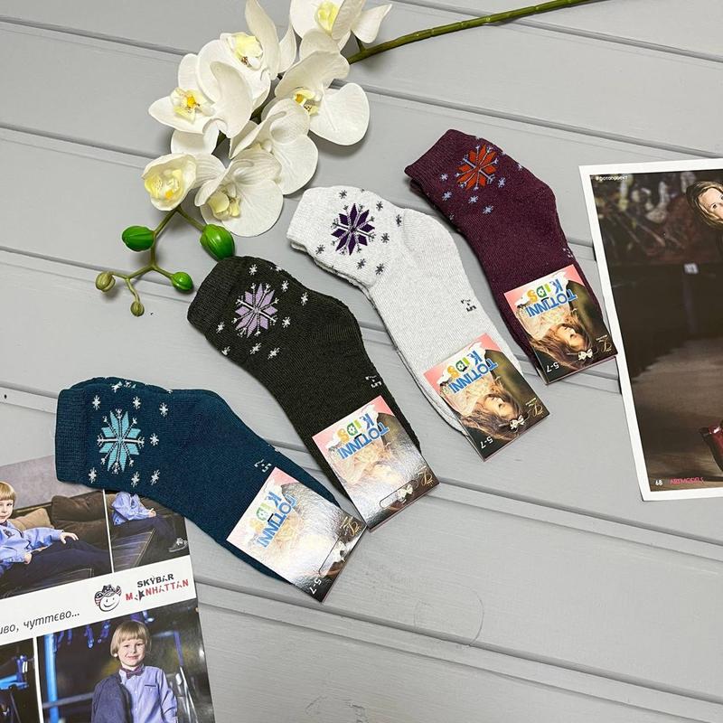 Шкарпетки дитячі махра, тепленькі. Малюнок сніжинка. Розмір : 5-7 років 7-9 років *Колір не обирається