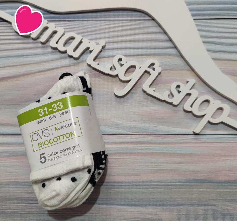 Набор черно-белых носков для девочки от OVS в размере 31-33 (6-8 лет) (с17). В наборе 5 пар - черные и белые в горошек и полоску. 75% хлопок, 23% полиамид, 2% эластан. При покупке трех товаров – укрпочта в подарок!