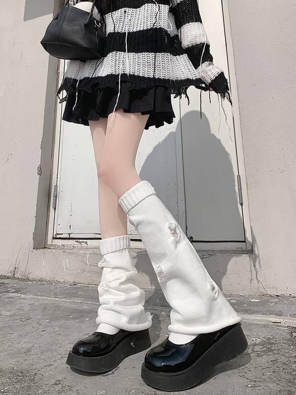Молочные гетры клеш с дирками 5687 под коленку гольфы однотонные объемные носки светло-гол...