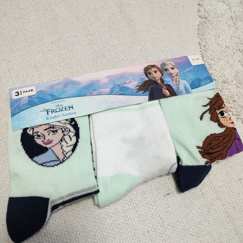Качественные носки для девочек с принтом из мультфильма "Frozen". Размер 31-34, в наборе 3 пары.