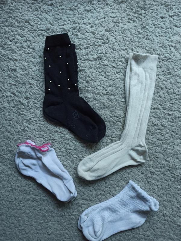 Очень стильные гольфики молочного цвета. На узкую ножку. Черные носочки с бусинками Daniel Dore. Короткие летние носочки: белые с перфорацией, с розовым рюшиком без, но тоже тоненькие. На ножку 27-29 размера. Цена за всё.
