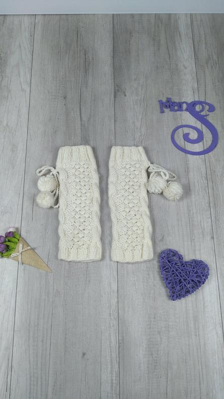 Детские теплые вязаные гетры без носка с помпонами для девочки гольфы белые