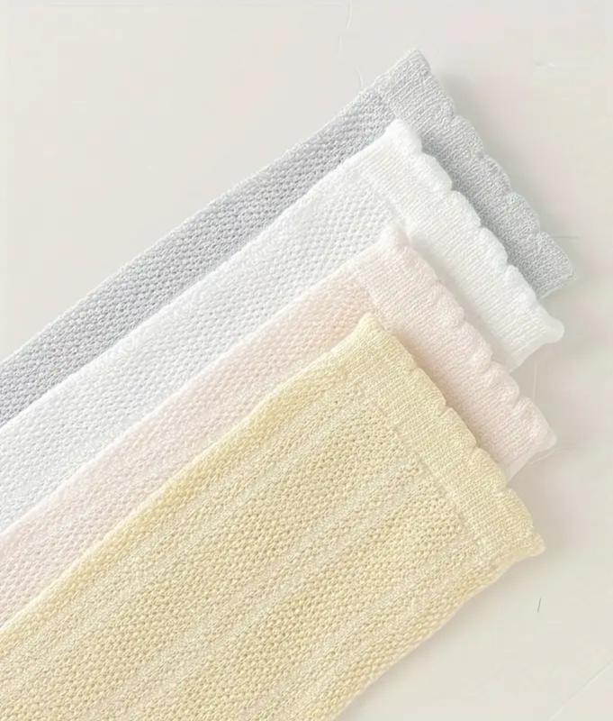 Кружевные гольфы для девушек из мягкого, приятного к телу трикотажа. 4 цвета: белый, бежевый, розовый и серый. Размеры: М -длина 35 см (около 2-5 лет) L - длина 45 см (около 6-9 лет)