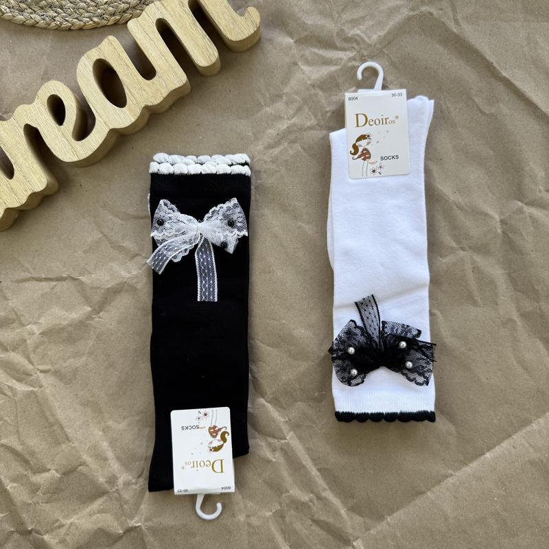 Эти гольфы – стильное украшение образа. Изысканное кружево, бантик с жемчужинками. Состав: 85% хлопок, 10% полиамид, 5% эластан Размеры: 30-33 33-36