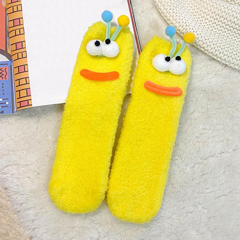 Детские носки теплые 4116 желтые гусени мягкие теплые пушистые с глазами и усами