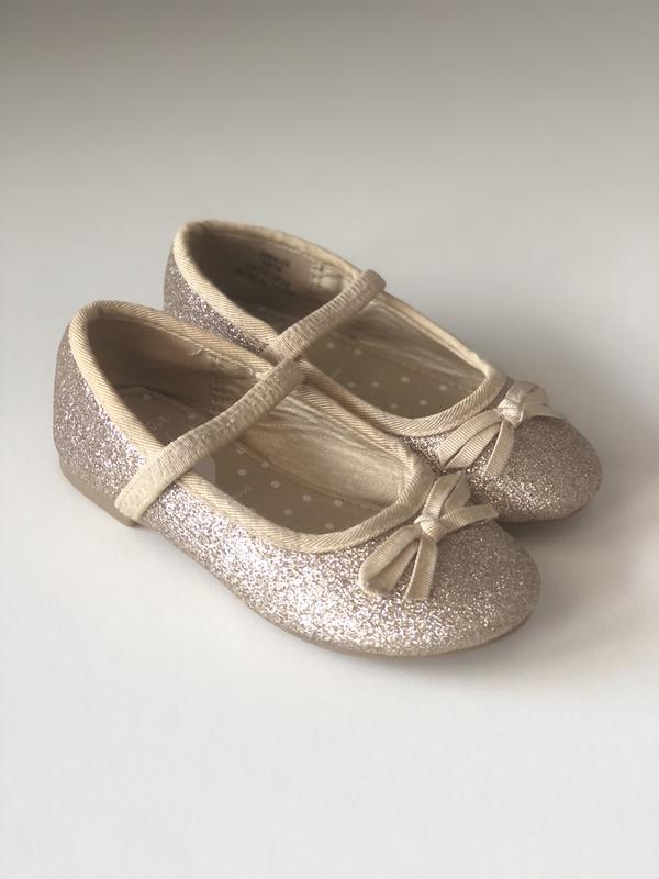 Дуже гарні та святкові туфельки, в гарному золотистому кольорі, на свято чи фотосессію. одягалися один раз на фотосессію до дня народження, у відмінному стані, гарно виглядають під будь-який образ, можливо в садочок на свято)