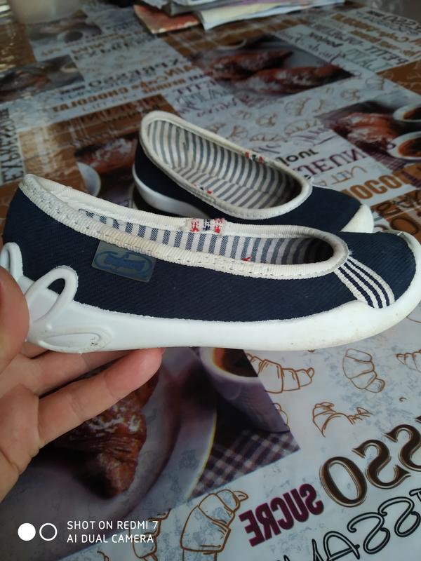 макасины или балетки джинсовые бу, на девочку р. 26 , на улицу то, что надо, целые из нюансов срезать резинки и от носки подошва белая еде то местами поцарапала, производство Польша качественные, постирать и все.