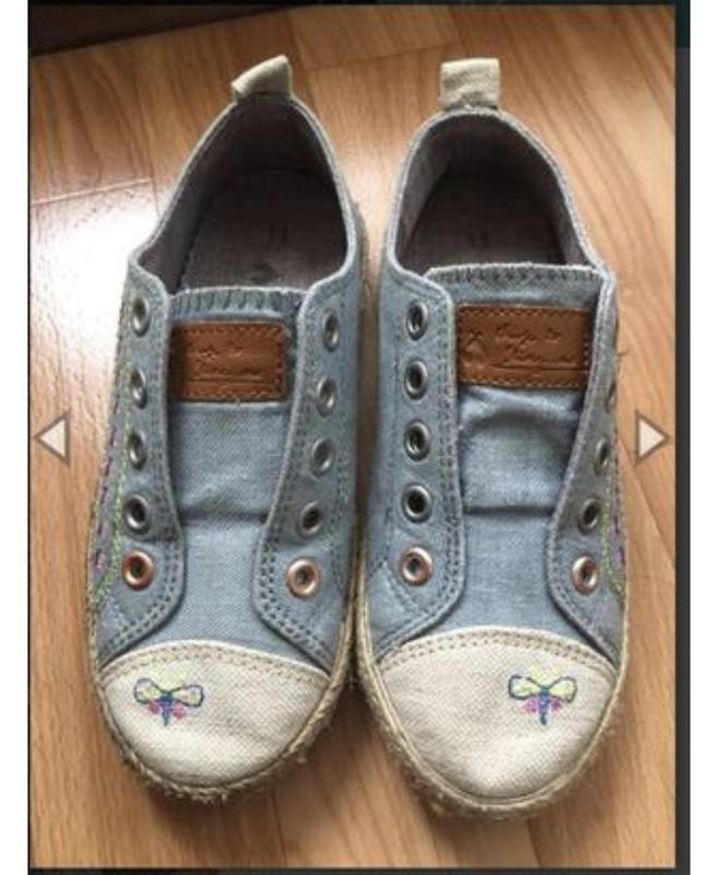 Джинсовые мокасинки, по стельке 18,5 см. По одной резинке подрезали, чтоб легче одевать, состояние на фото