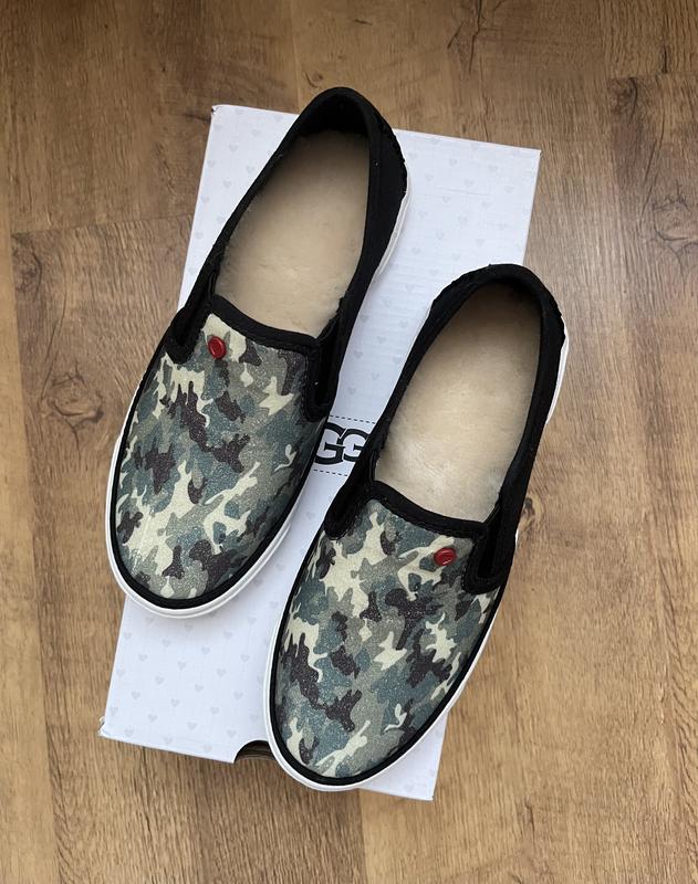 Дуже гарні мокасіни UGG Kids Lace-Up Glitter Camo. Оригінал. Верх – текстиль, глітерне покриття. Устілка - овчина. Дуже зручні, м'які, чудово сидять і виглядають на нозі! За рахунок м'якої теплої устілки можна носити до морозів (перевірено на собі). Розмір 3 Youth - устілка 22 см Ціна - 1050 грн