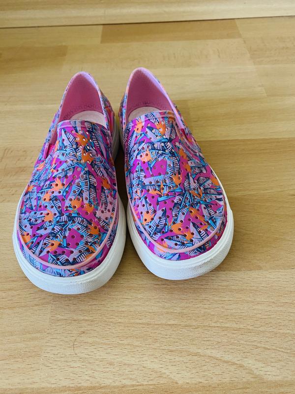 Мокасины для девочки Crocs размер С10. Есть небольшой ньюанс небольшое повреждение подошвы. Практически не видно. Отобразила на фото #5.