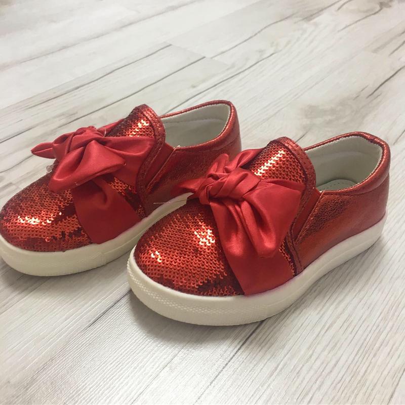 Яркие слипоны. Верх паетки и атласный бант. Паетки пришиты. Стелька кожа с супинатором.