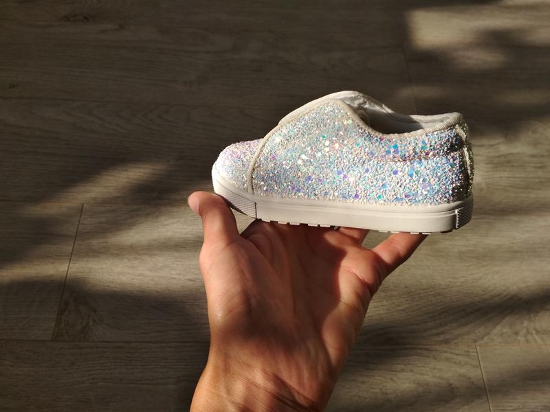 Сліпони, фірми River Island, з блискітками. Дуже круті та стильні. Гарно переливаються на сонці. Розмір - 5 (іде на наш 22). Підійдуть на вузьку ніжку з невисоким підйомом. Довжина устілки - 14 см. Стан близький до ідеального, лише на носочку лівого відклеїлось декілька блискіток. Фото надішлю в приват.