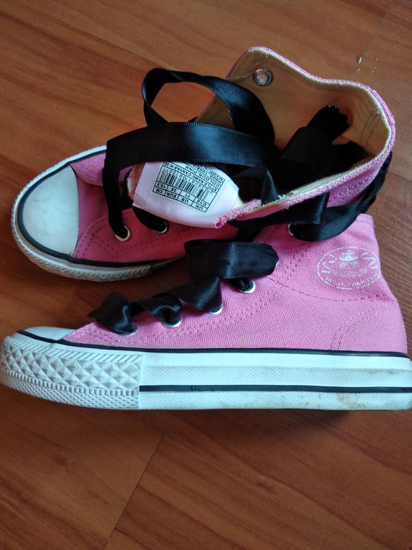 стелька 17 см. на этикетке 15.5 см розовые текстильные мокасины с черными атласным лентами -шнурками. размер указан 28