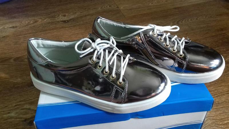 Зеркальные слипоны. Очень красивый и необычный цвет. Вживую ближе к темному серебру. Материал вверха - искусственная кожа (лак) Застёжка - молния (сбоку) и шнуровка В наличии: размер 35. Стелька 21,3см размер 37. Стелька 22,7см