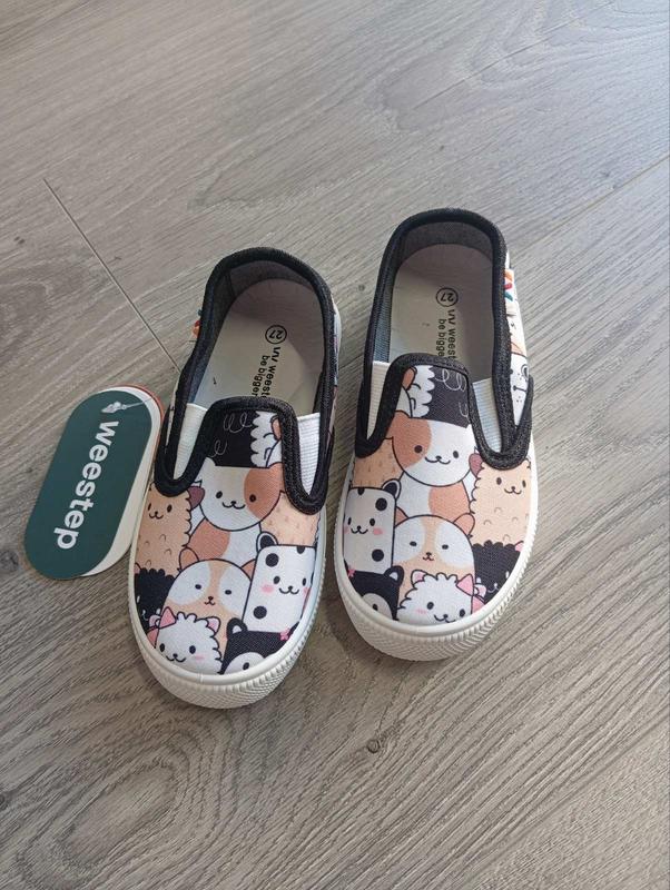 Слипоны детские для девочки с принтом животных. Верх - текстиль, подошва - резина.