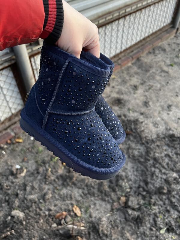 В наличии Угги НАТУРАЛКИ Очень тёплые, лёгкие и удобные Прошиты Верх-натуральный замш Внутри густой иск.мех Цвет темно-синий 27-17.5см - кое-где отпали камушки