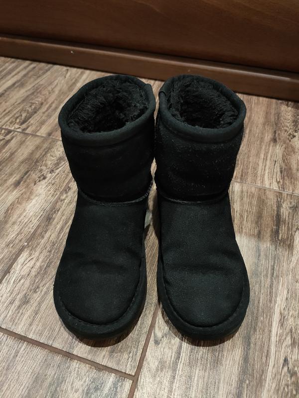 Замшевые угги в идеальном состоянии, немножко нужно обновить цвет, хотя цвет насыщенно черный. Передки не счесаны, пятки не стоптаны и не завалены. По стельке 17-17.5. Если отправка укрпочтой, то оплата 100% на карту.