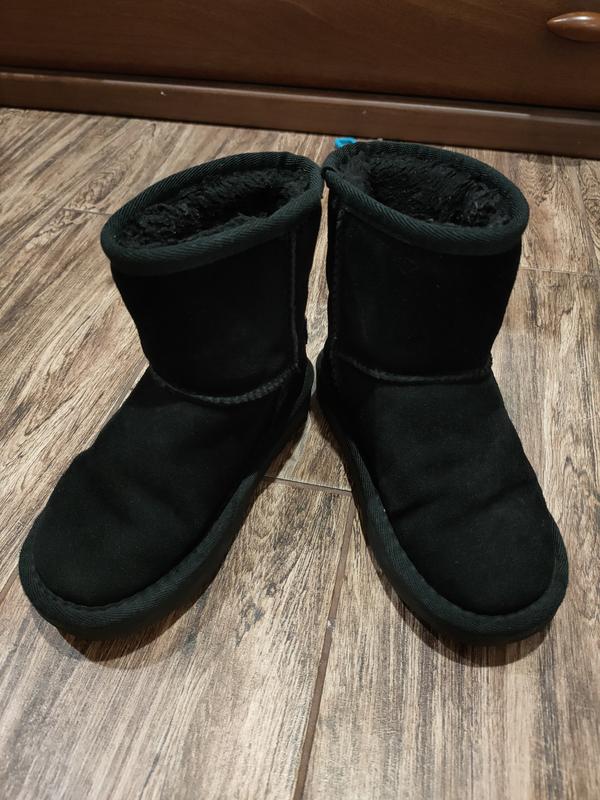 Замшевые угги в идеальном состоянии, немножко нужно обновить цвет, хотя цвет насыщенно черный. Передки не счесаны, пятки не стоптаны и не завалены. По стельке 18-18.5. Если отправка укрпочтой, то оплата 100% на карту.