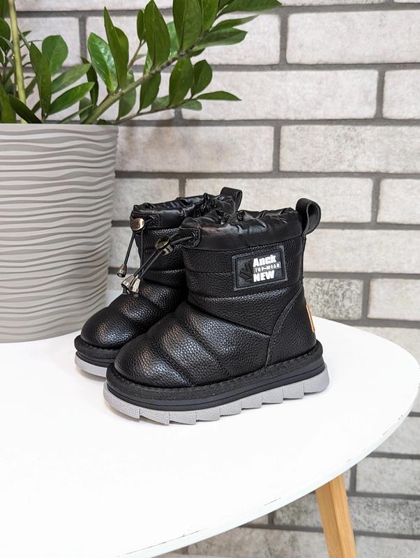 Стильні угги від тм Paliament. Верх якісна еко шкіра. Всередині густе тепле хутро ( натуральна овчина 60%) Збоку є замочок. По верху утяжка на кулісці, дуже зручно, не буде задувати. Дуже легкі та зручні. Розміри: 26р-17см 27р-17,5см 28р-18см 29р-18,5см 30р-19см 31р-19,5см