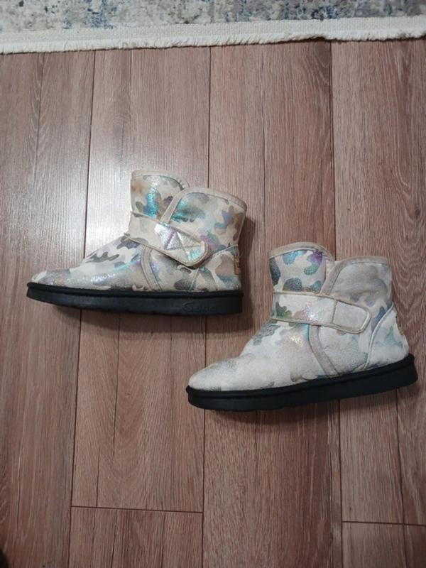 Очень удобные угги, теплые, регулируются липучкой.На фото пятна от воды.