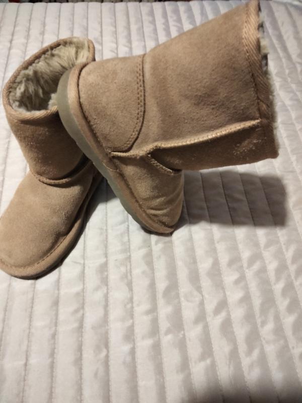 Детские сапожки -угаги из натуральной замши в светло коричневом цвете в размере 28, что по стельке 17 см.луги в хорошем состоянии, переносились совсем мало, что видно по подошве.Можут быть как для мальчика так и для девочки.