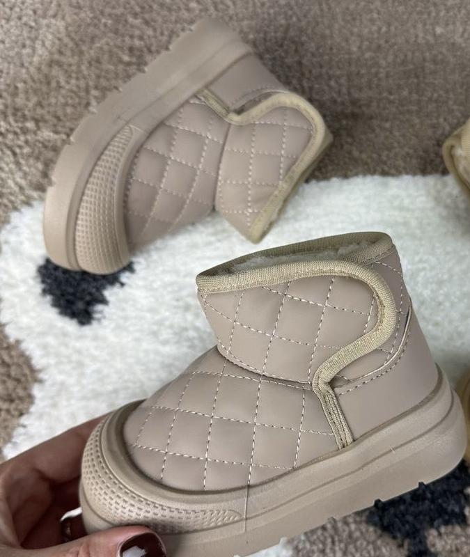 Верх -екошкіра Всередині на товстому теплому хутрі Носок з захистом від збивання Фіксація на липучку Легенькі,гнучкі та зручні 21р - 13 см 22р - 13.5 см 23р - 14 см 24р - 14.5 см 25р - 15 см 26р - 15.5 см 27р - 16 см Замір всередині