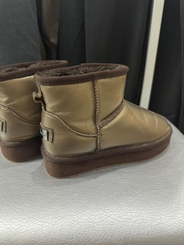 Уггі для дівчат, верх шкіра, середина натуральне хутро, підошва поліуретан, майже не носились, донька взувала пару разів, стелька 22.5, колір бронза, розмір 36, дефектів і подряпин немає