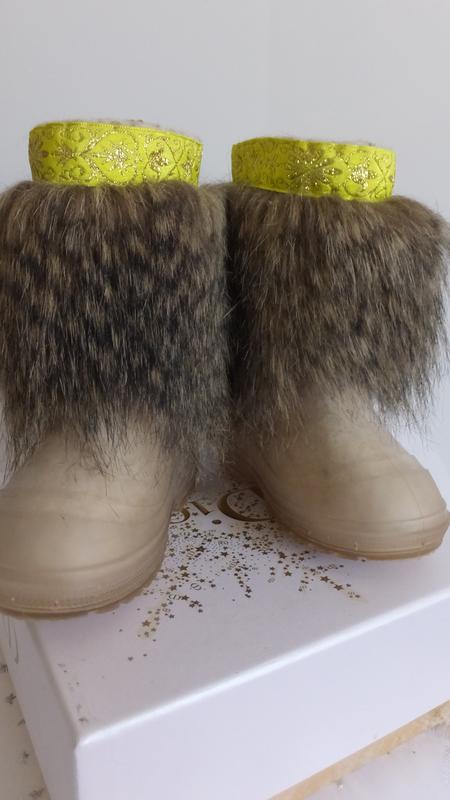Продам мягчайшие фирменные детские валенки - угги от бренда BOOTECO. Размер валенок - 23 - 24 (16 см стелька). Изготовлены из очень мягкой на ощупь 100%-ной шерсти, украшенные снаружи натуральным мехом. Этот натуральный природный материал прекрасно согреет детские ножки даже в самые сильные морозы, создавая эффект целебного «сухого тепла». Классические детские валенки изготавливаются мастерами вручную из качественной овечьей шерсти без окрашивания и химической обработки. Самовалки отличаются ровностью и мягкостью войлока, имеют натуральный цвет и максимально сохраняют свои уникальные свойства: -Аккумулируют тепло и выводят влагу. -Обеспечивают свободное положение стоп при ходьбе. -Оказывают легкий массаж. -Животный воск обладает противовоспалительным действием. Галоши снижают риск падений на скользких поверхностях и защищают от воды, грязи, пыли. Надевайте детям носки из натуральной ткани. Синтетика нарушает естественный тепло- и влагообмен. Такая обувь обеспечивает самый высокий уровень комфорта при любых температурах воздуха, и при этом исключает возникновение «парникового эффекта» внутри валенка. Благодаря тому, что в валенках стопа находится в физиологически естественном положении и не сжимается узкой обувью, детским ножкам будет комфортно даже во время длительных прогулок. Эти красивые натуральные валенки ручной работы самого высокого качества, они подарят комфорт и защитят маленькие ножки от морозов. А довольно высокие прозрачные силиконовые галоши продлят их службу и сохранят от загрязнений, промокания и скольжения. Для профилактики и правильного формирования стопы важен каблучок от 0,3 см. и эластичность — свойства галош из силикона на валеночках. Очень легко снимаются и надеваются. Состояние валенок и галош - как новые, вообще без следов носки, без запаха и пятен. Детские валенки — самая безопасная обувь. Валеночки способствуют правильному развитию детского организма, здоровому формированию детской ножки, поскольку имеют в меру плотный задник. Валеночки — это: самая экологически чистая обувь самая теплая обувь достаточно удобная современная, модная, красивая обувь самая безопасная обувь не содержит искусственных красителей не токсична не имеет побочных последствий. Перешлю.