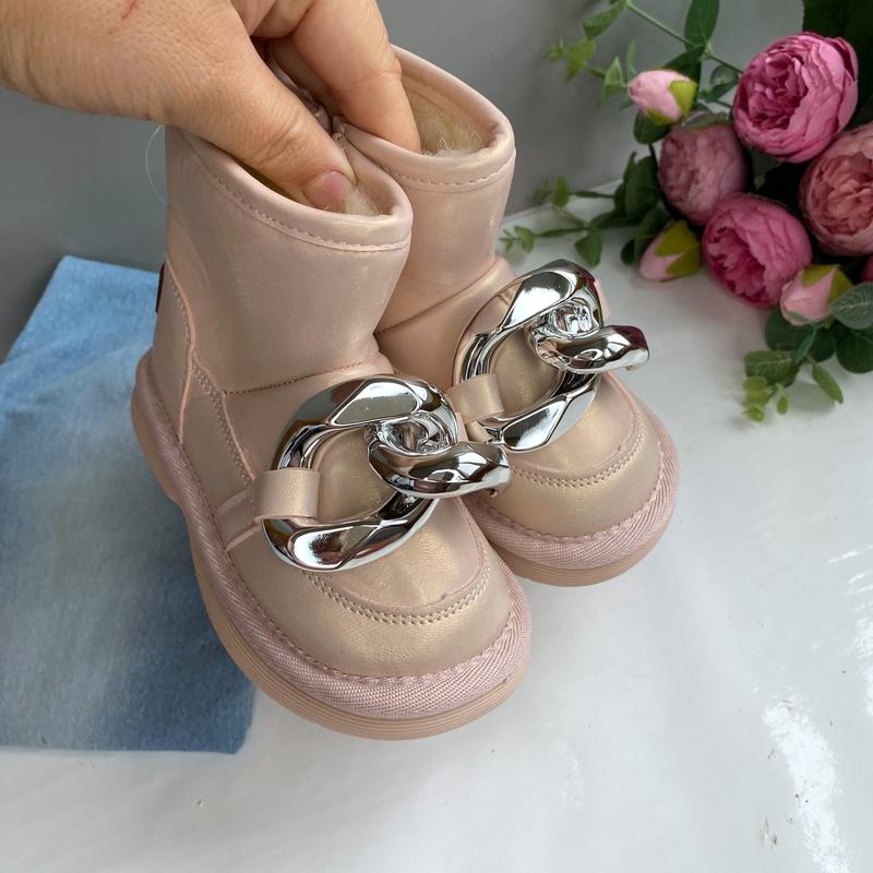 Стильные угги украшены цепочкой НАЯВНОСТЬ УТОЧНЯТЬ Очень теплые и удобные Верх эко кожа Внутри утеплены густым слоем овчины (60% натуральной) Сбоку на молнии Легкі. Гибкая подошва 24 - 15,5 см 27 - 17,2 см 29 - 18,5 см 30 - 19,0 см