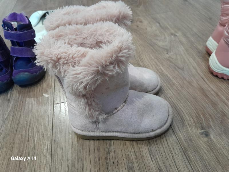 Зимние угги для девочки в хорошем состоянии. Розового цвета, теплые. Высокие, что защищает от попадания снега в сапожек. Размер 23 Подошва целая, носочки и пяточки не взбиты
